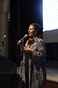 Her critique also extended to social issues, such as gender discrimination in factories, rampant overconsumption, and the waste of underutilized clothing. As she warned, “We’re buying more, but we’re using less — and when we buy more, the industry makes more money,” underscoring how fast fashion profits from disposable habits. Yet in the face of this seemingly disheartening news, she still offered a blueprint for change by suggesting various key solutions for both suppliers and consumers, including circular business models, resource recycling, renewable energy, natural fabrics, non-toxic dyes, regional buying habits, fewer e-commerce returns, sustainable heritage design practices, and climate justice that protects workers as much as the planet. “Don’t be discouraged,” she urged. “There’s still a lot we can do — you have a lot of choices in your hands to make an impact.”